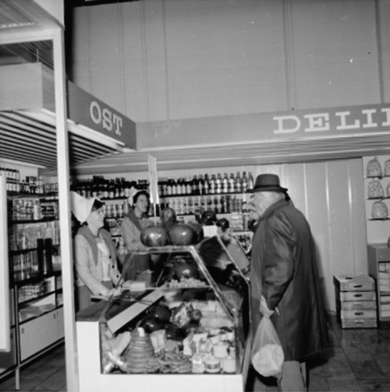 Konsum Domus, affärsinteriör, kunder och personal. Holländsk vecka.