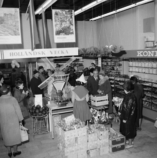 Konsum Domus, affärsinteriör, kunder och personal. Holländsk vecka.