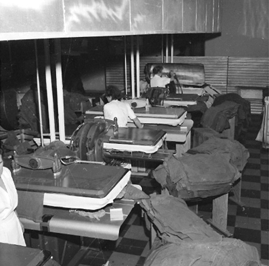 Örnsro tvätten, interiör, tre kvinnor.