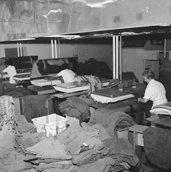 Örnsro tvätten, interiör, tre kvinnor.