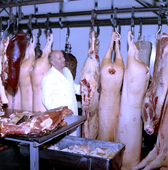 Robertsons Charkuteri, interiör av kylrummet, en man.