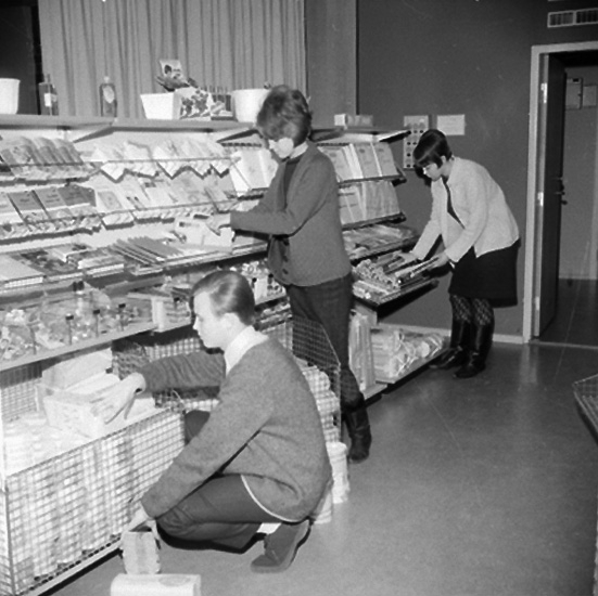 Västra Yrkesskolan, detaljhandel, interiör, tre personer.