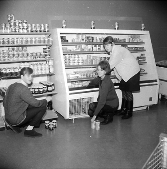 Västra Yrkesskolan, detaljhandel, interiör, tre personer.