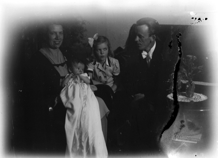 Rumsinteriör, familjegrupp 4 personer. Barndop.