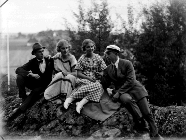 Märta och Margit Lindskog och två unga män.