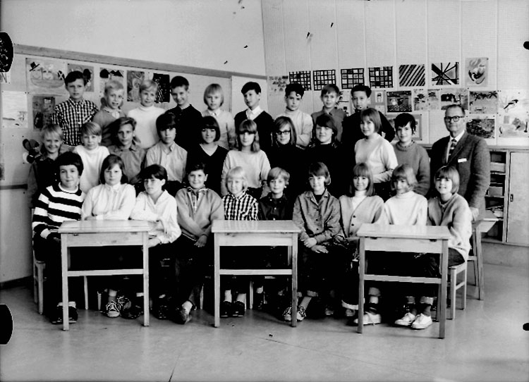 Vasaskolan, klassrumsinteriör, 29 skolbarn med lärare Bertil Berglund.