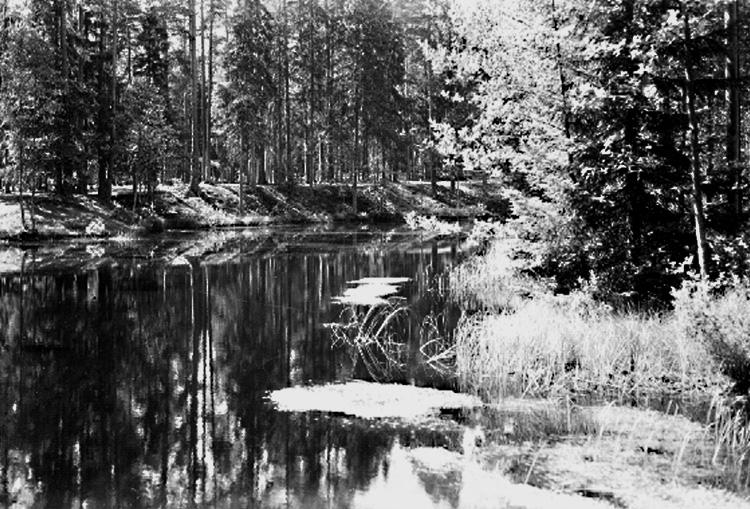 Titel: Hålahult, dammen. Bilden tagen för vykort. Förlag: Hålahults Patienters Understödsförening.