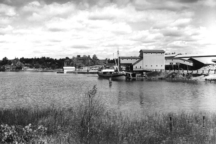 Titel: Motiv från Åmmeberg, fabriksbyggnader. Bilden tagen för vykort.