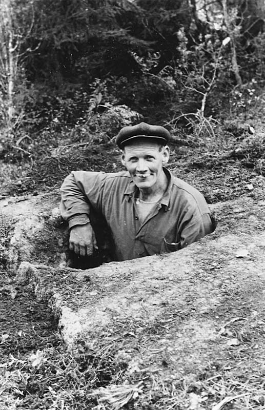Titel: Jättegryta öster om vägen mellan Stensjön och Dammtorp. En man. Henning Johansson.