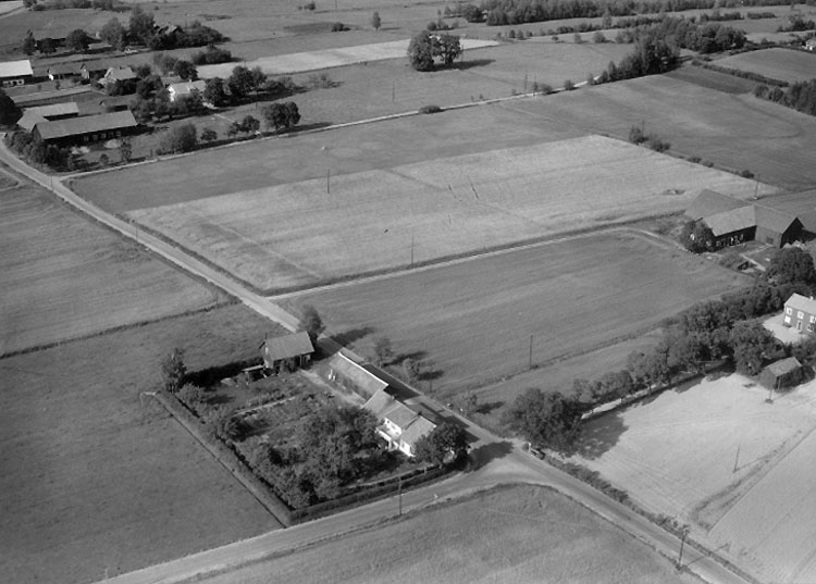 Flygfoto över Nalavi, Kräcklinge, bostadshus och ekonomibyggnader.