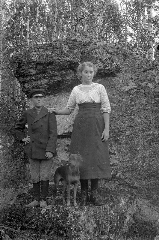 En flicka, en pojke och en hund.