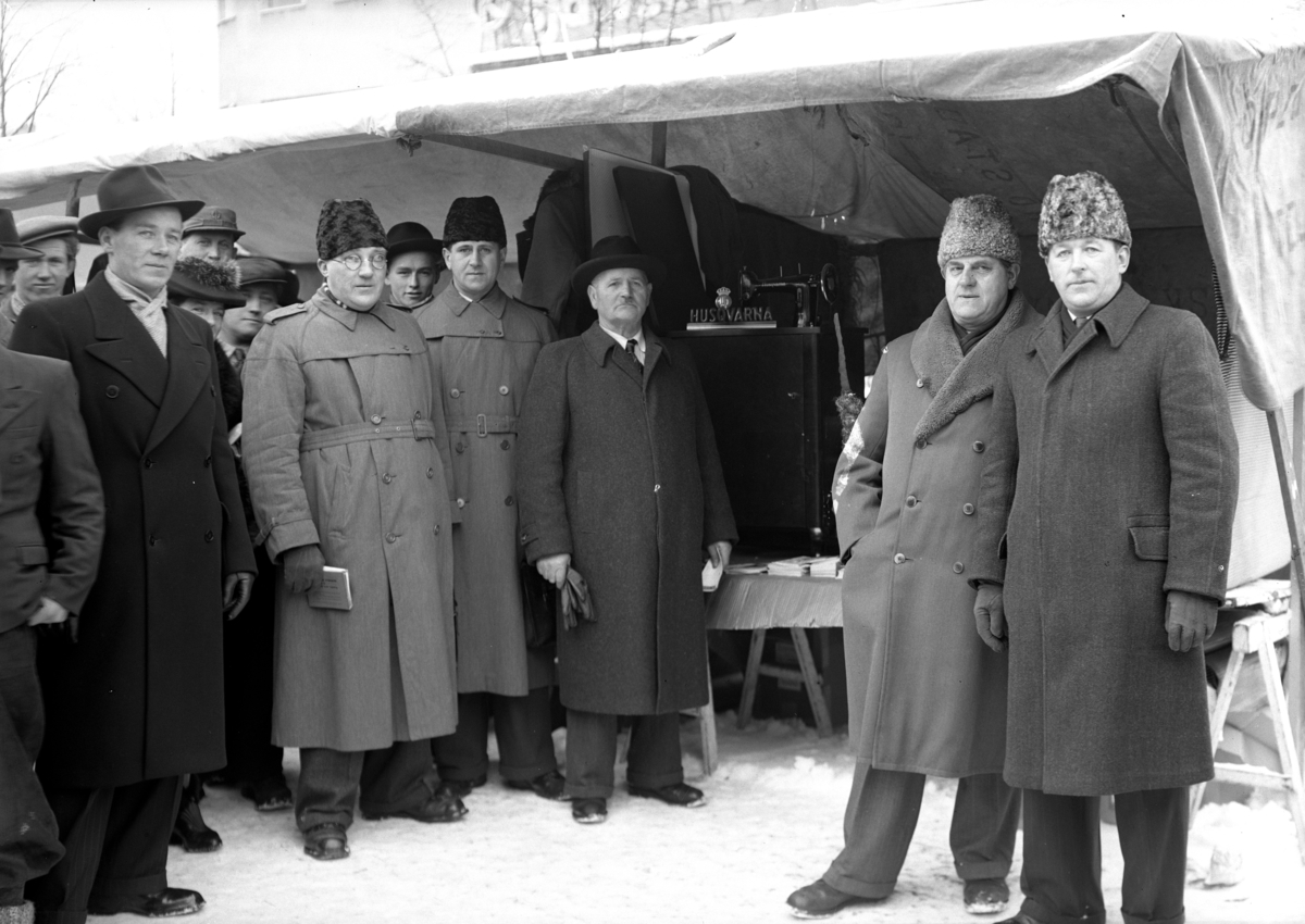 Hindersmässan på Stortorget, försäljning av symaskiner, Huskvarna Depotens marknadsstånd.