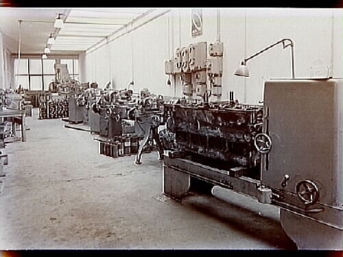 AB Motorrenovering, interiör från maskinhallen med maskiner.