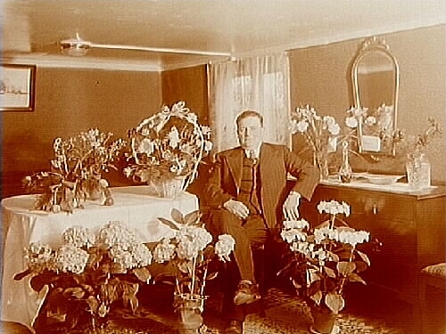 Titel: Rumsinteriör, en man. Försäljare O.H. Karlssons 50 årsdag. (f.d. Kafé Markbacken)