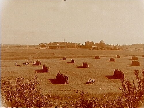 Utsikt från Storstigen över Tybble gård, höhässjor.