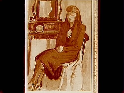 Oljemålning. Motiv: Sittande kvinna.