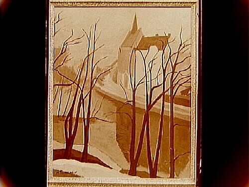 Oljemålning. Motiv: Trefaldighetskyrkan i Örebro.