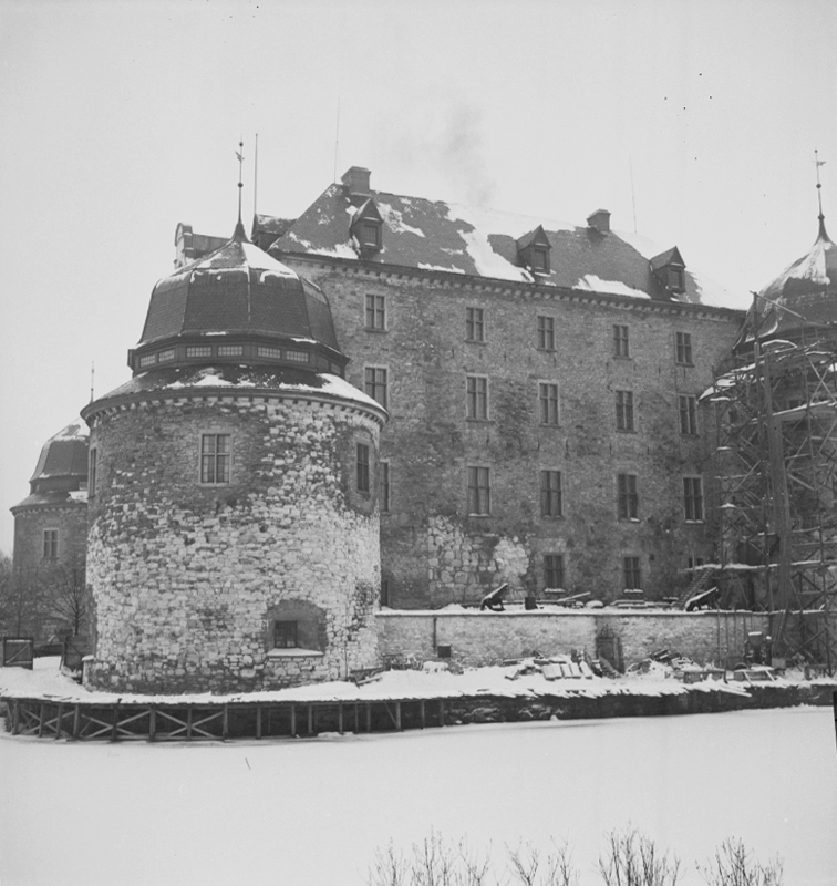 Titel: Örebro slott, exteriör. 14 januari 1943.