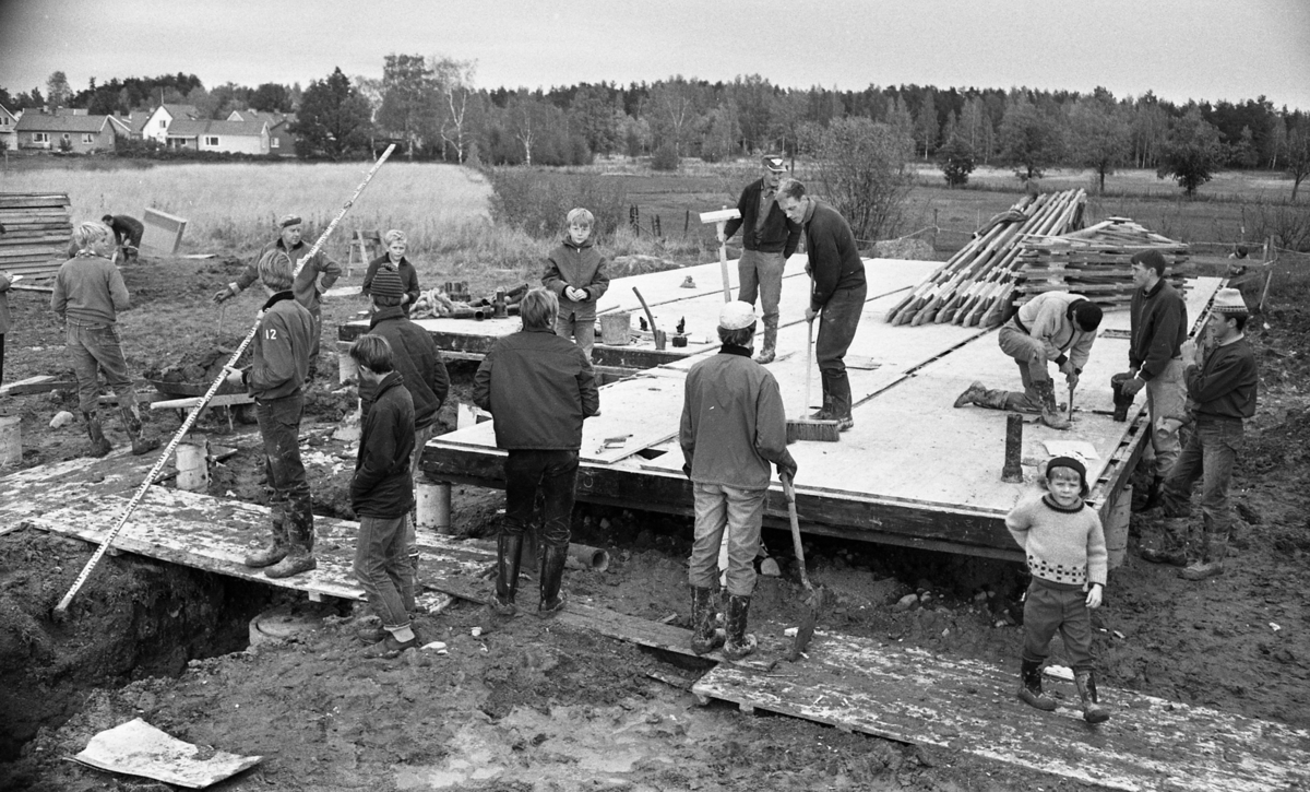 Bilden visar medlemar i Hagaby gymnastik- och idrottsförening som bygger ny klubbstuga.