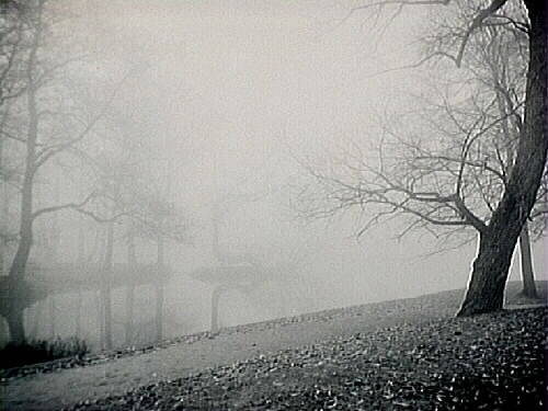 Vasastrand, novemberdimman över Svartån, från Nämndhuset.