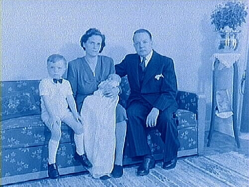 Rumsinteriör. Ett par och två barn.