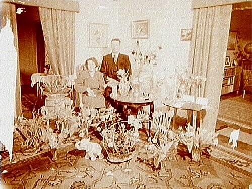 Titel: Målare Ragnar Rings 50 årsdag. Rumsinteriör, två personer.