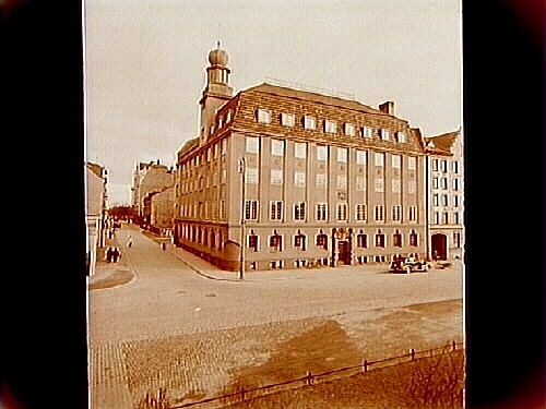 Titel: Stenhus i fem våningar med fasad i grå stänkputs, Albin Rapps Konfektionsfabrik.