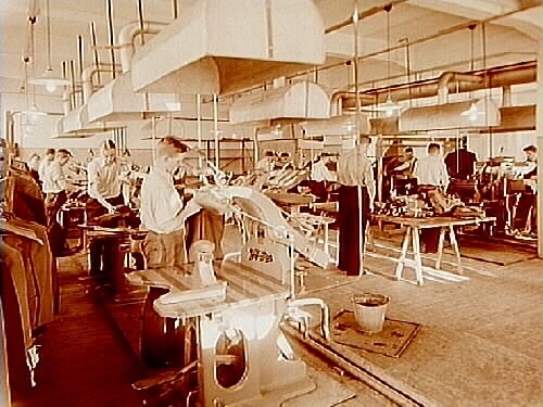 Albin Rapps Konfektionsfabrik, interiör från pressrumet.