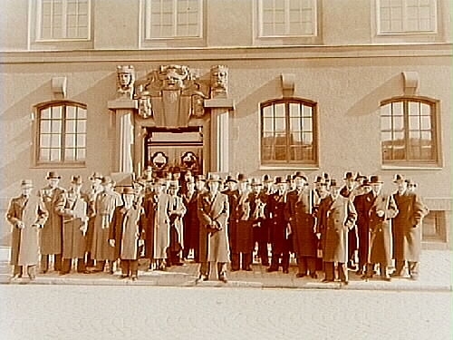 Sveriges Beklädnads Manufakturförening, medlemmar utanför Albin Rapps kontor.