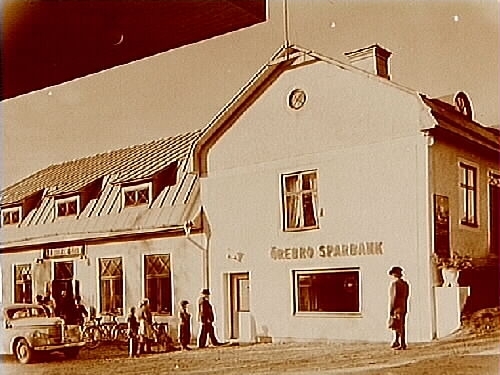 Envånings vinkelbyggt bostadshus, Örebro Sparbank, filialen i Götlunda.