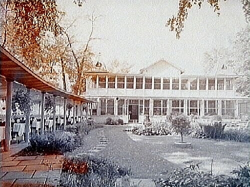 Restaurang Strömparterren: trähus med fasad i gul spåntpanel.