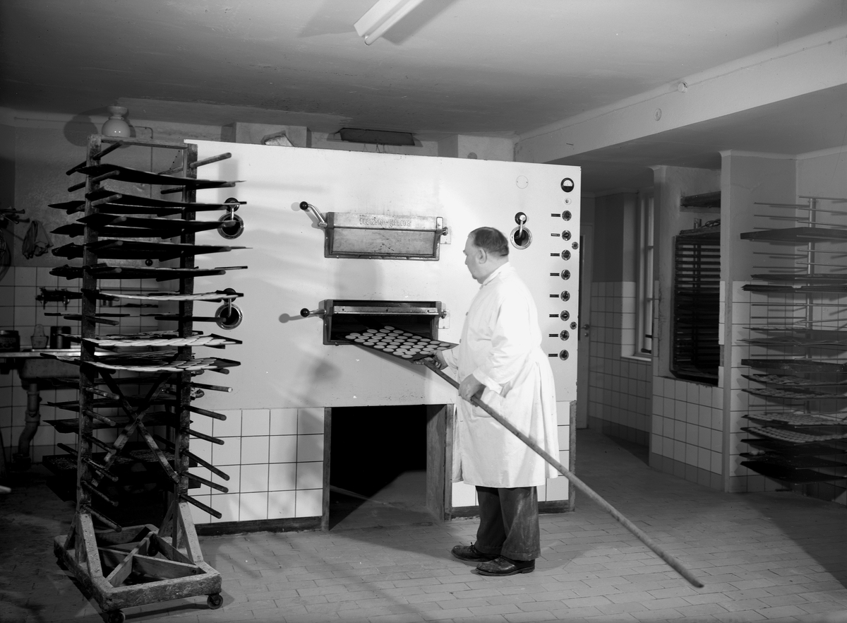 Titel: Henning Kjellgrens Bageri, interiör. Bakugn, levererat av Elektro-Helios, Stockholm