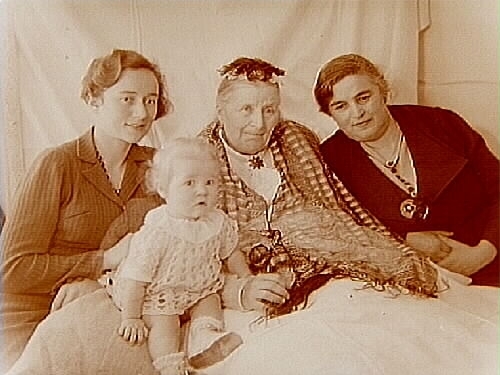 Titel: Släktgrupp, fyra generationer kvinnor. Gustaf Andersson