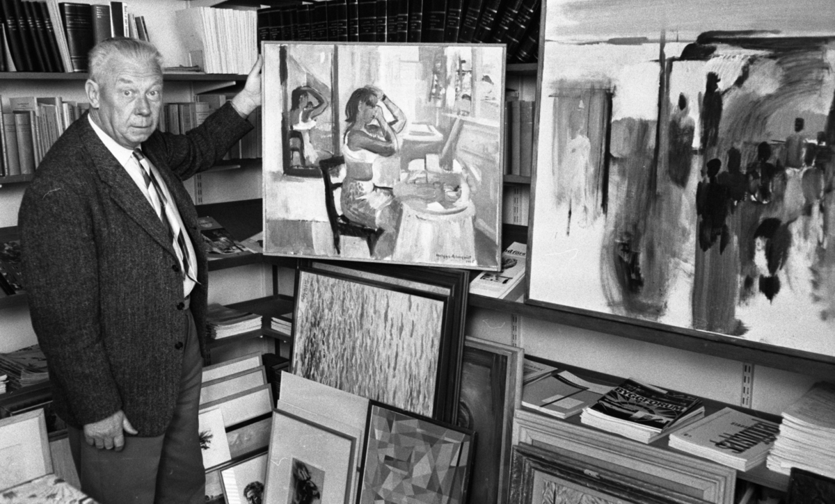 Titel: Kommunalrådet Lars Önner om tavlor som finns lagrade i ett rum på Nämndhuset, 21 maj 1966.