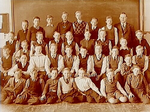 Vasaskolan, klassrumsinteriör, 31 pojkar med lärare David Wählby, sal 5.