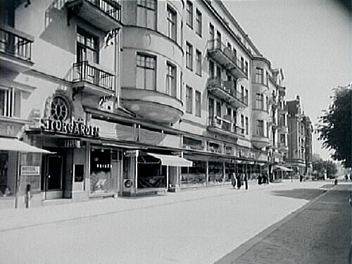 Stenhus i fem våningar med fasad i gulgrå grovputs. Byggnaden har en serie burspråk och dekorativa balkonger samt en enkel putsdekor. Bottenvåningen uppslagen av butiksfasad Hotell Storgården, Fredsgatan 11.