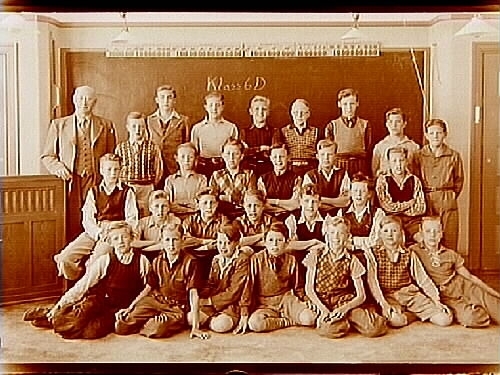 Engelbrektsskolan, klassrumsinteriör, 26 skolpojkar med lärare F. Kuhlin, klass 6D, sal 1.