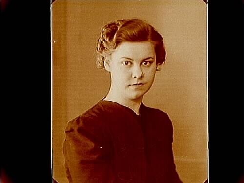 Titel: En ung kvinna, bröstbild. Irina Bäcksbacka Konstsalongen, Helsingfors.