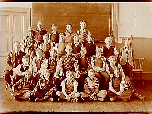 Vasaskolan, klassrumsinteriör, 23 pojkar med folkskollärare Nils Flodin, sal 12.