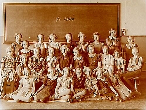 Vasaskolan, klassrumsinteriör, 25 flickor med lärarinna fru Mia Jansson, sal 23.