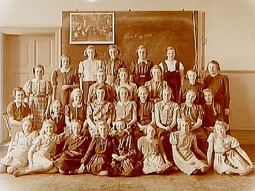 Vasaskolan, klassrumsinteriör, 27 flickor med lärarinna fröken Ester Larsson, sal 10.