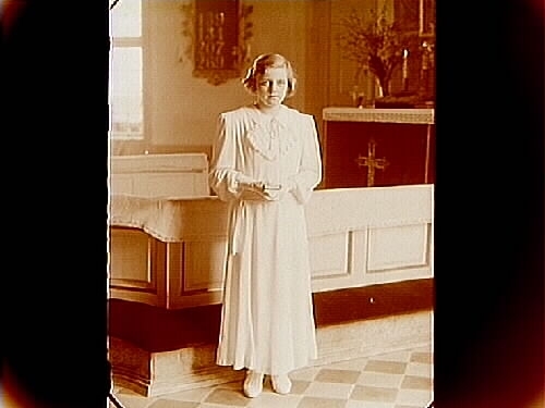 Ung flicka i Kils kyrka, konfirmand Inga Karlsson, Vallby, Kils socken.