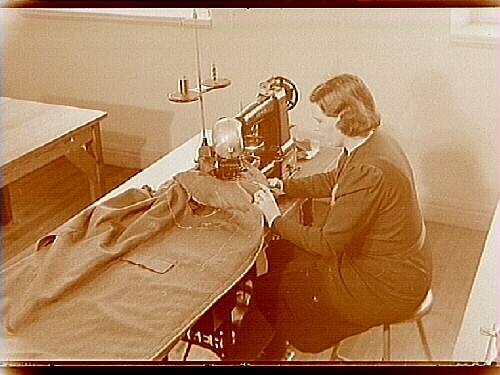 Albin Rapp Herrklädersfabrik, fabriksinteriör, sömmerska, en kvinna.