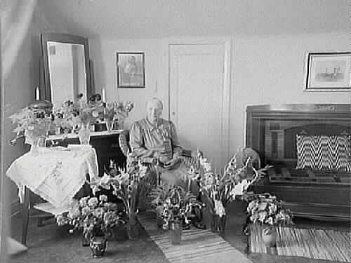 Hjärsta Missionshus, interiör, en äldre kvinna.