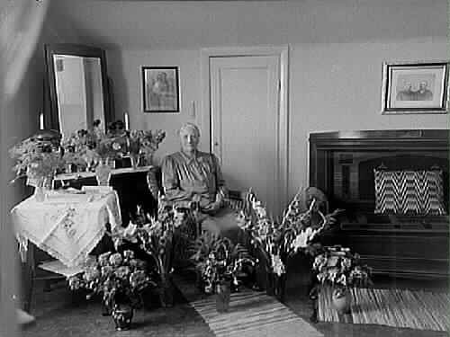Hjärsta Missionshus, interiör, en äldre kvinna.