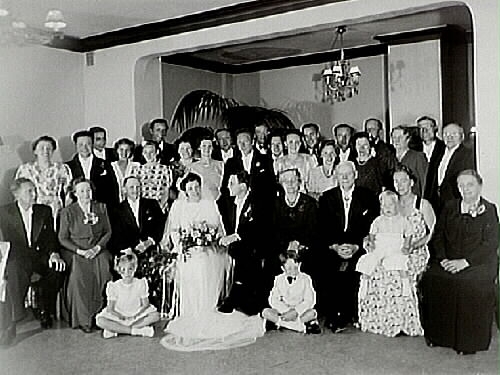 Bröllop, brudpar och bröllopsgäster.