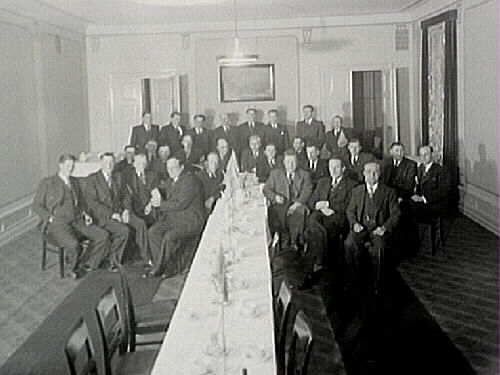 27 herrar vid ett bord. Velocipedhandlareföreningen.