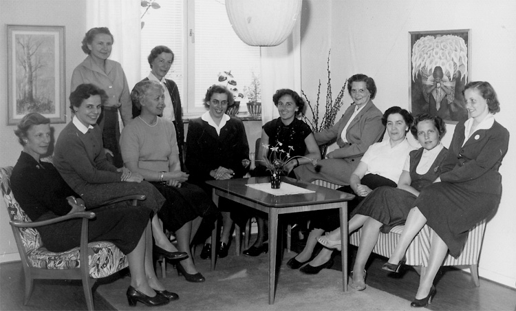 Rumsinteriör, grupp 11 kvinnor (lärarinnor ?).