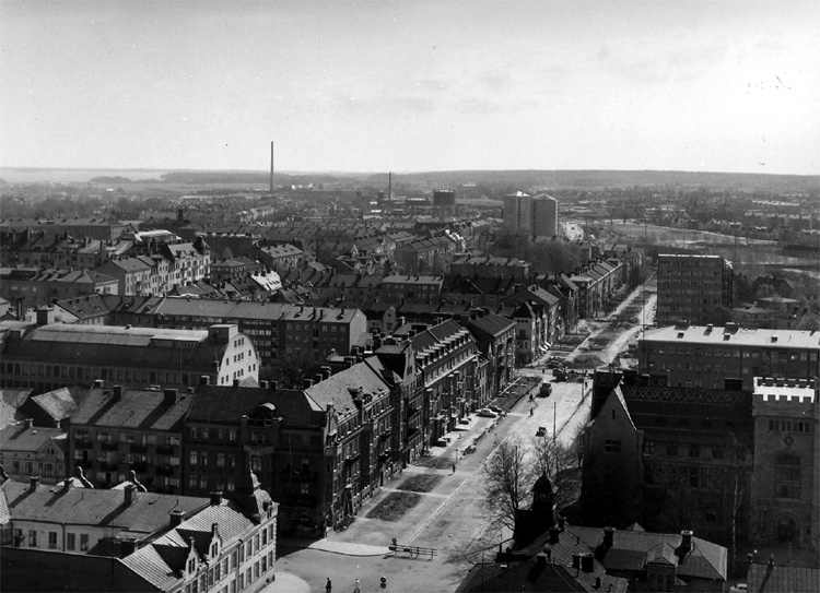 Stadsvy över Örebro med byggnader och bostadshus.
