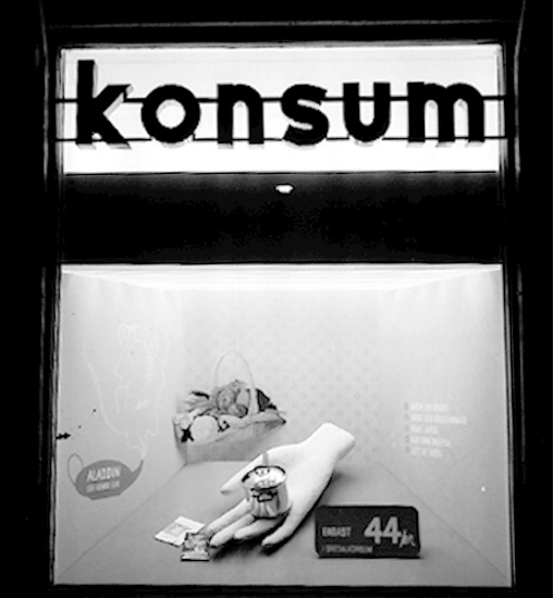 Konsum, exteriör, skyltfönster.
